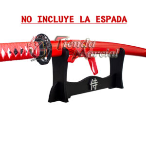 Base para 1 espada (katana kake) construida en madera y terminación en negro mate. Esta base es desarmable en 3 piezas.