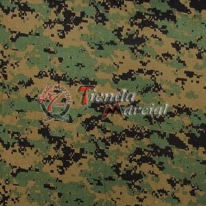 Camiseta camuflada tipo Woodland Digital Camo fabricada en 60% algodón y 40% poliéster, lo que nos brinda una frescura y comodidad a la vez de gran durabilidad y resistencia al deterioro prematuro.