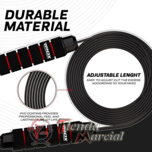 Cuerda fitness de alta velocidad para saltar, marca RDX. Agarraderas recubiertas de neopreno muy livianas. Regulable al largo necesario para la altura de quien la usa. Cuerda fabricada en goma sólida resistente. Tiene sistema de rodamientos sellados para la rotación a alta velocidad durante el ejercicio.