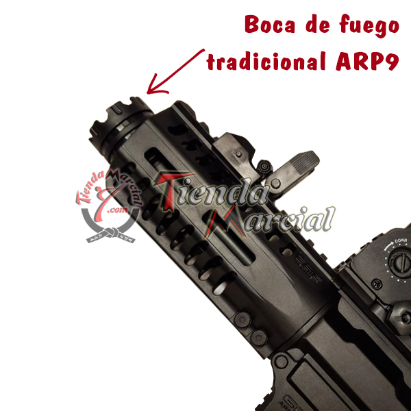 Con un tamaño de 59 cms de largo y un peso ligero de 3.5 libras, el ARP9 es ideal para maniobrar en espacios reducidos. Su color negro mate y su diseño robusto le dan un aspecto intimidante, perfecto para destacar en cualquier escenario de juego.
