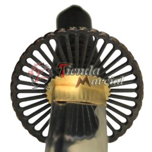 * La Tsuba está elaborada en metal con acabado en negro mate. El Habaki de la espada es una construcción de una sola pieza de latón. Dos Seppa en bronce sujetan la hoja en la Tsuka.