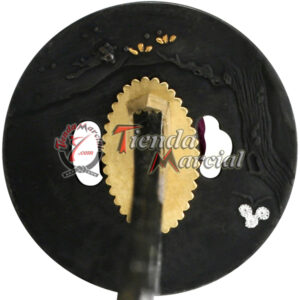 * Dos pasadores de bambú (mekugi) aseguran la hoja en el Tsuka. Dos ennegrecidos Menuki decoran cada lado de la Tsuka.