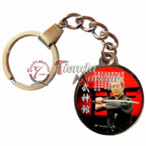 Este llavero es metálico con 3,3 cms de diámetro; la cadena tiene 4 cms de largo. En total, este llavero mide 9 cms de largo. La imagen tiene una capa protectora transparente, la cual en la foto de muestra no se alcanza a apreciar.