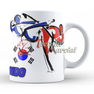 Mug o pocillo en cerámica de color blanco con oreja para agarre. Terminado brillante que resalta los colores de los motivos impresos.