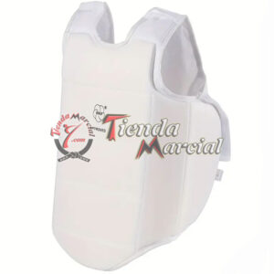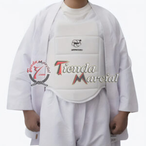 Disponible en color blanco, esta pechera está pensada para usarse debajo de la chaqueta (uwagi) del karategi, ofreciendo protección interna sin alterar la estética del uniforme. Es ideal para karatekas que buscan seguridad sin sacrificar movilidad ni estilo.