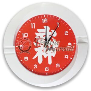 Hermoso reloj de pared redondo con relieve en pasta con los Kanji (idioma japonés) de BUJIN «Dios de la guerra». Tiene indicador horario, minutero y segundero. Su motor funciona con una batería AA (batería no incluida).