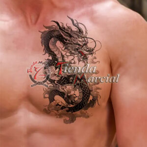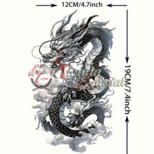 El Tattoo Unryû – Dragón en las Nubes es un tatuaje temporal inspirado en la elegancia y el misterio de los dragones orientales. En la cultura japonesa, el dragón de las nubes (雲龍 – Unryû) simboliza poder espiritual, protección y transformación. Este diseño en escalas de grises, con ojos y boca en rojo intenso, resalta con un estilo imponente y lleno de carácter, ideal para quienes buscan un tatuaje con fuerza y misticismo.